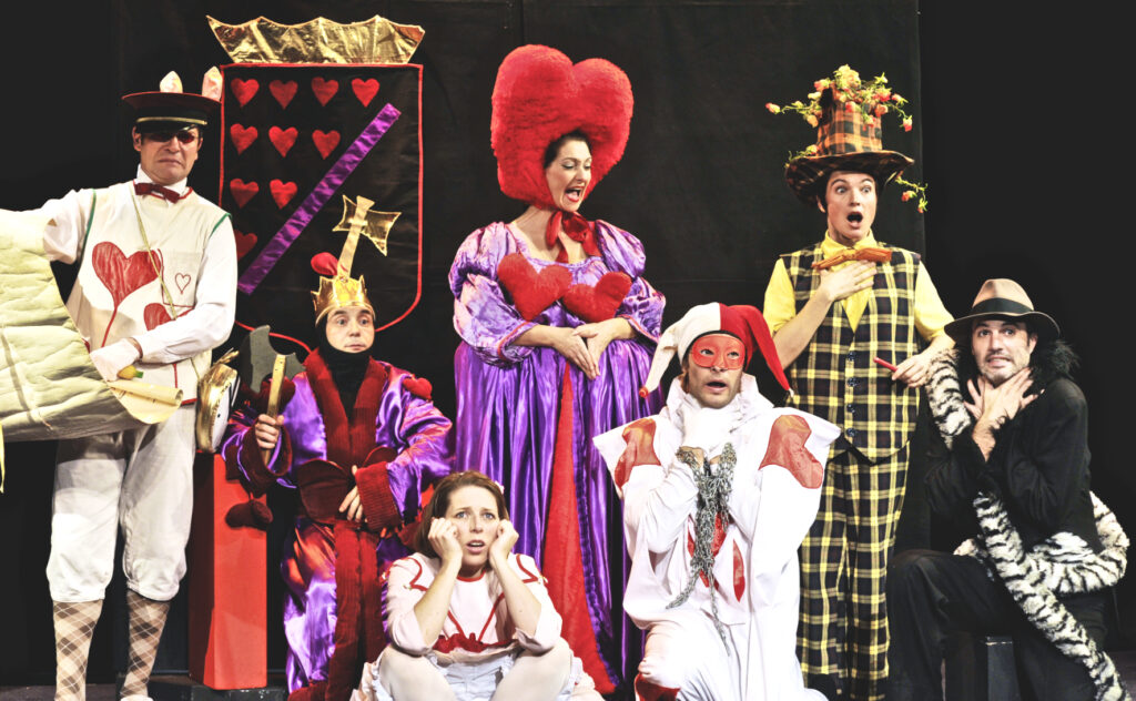 Alice, tirée de son ennuyeuse lecture par l’apparition d’un Lapin blanc très pressé, se retrouve précipitée dans un monde merveilleux. Elle y rencontrera la Chenille psychédélique, la Duchesse aux manières singulières et son Chat du Comte de Chester tout sourire, le Chapelier et le Chien Touffu… et bien sûr l’inévitable Reine de cœur entourée de toute sa cour. »
